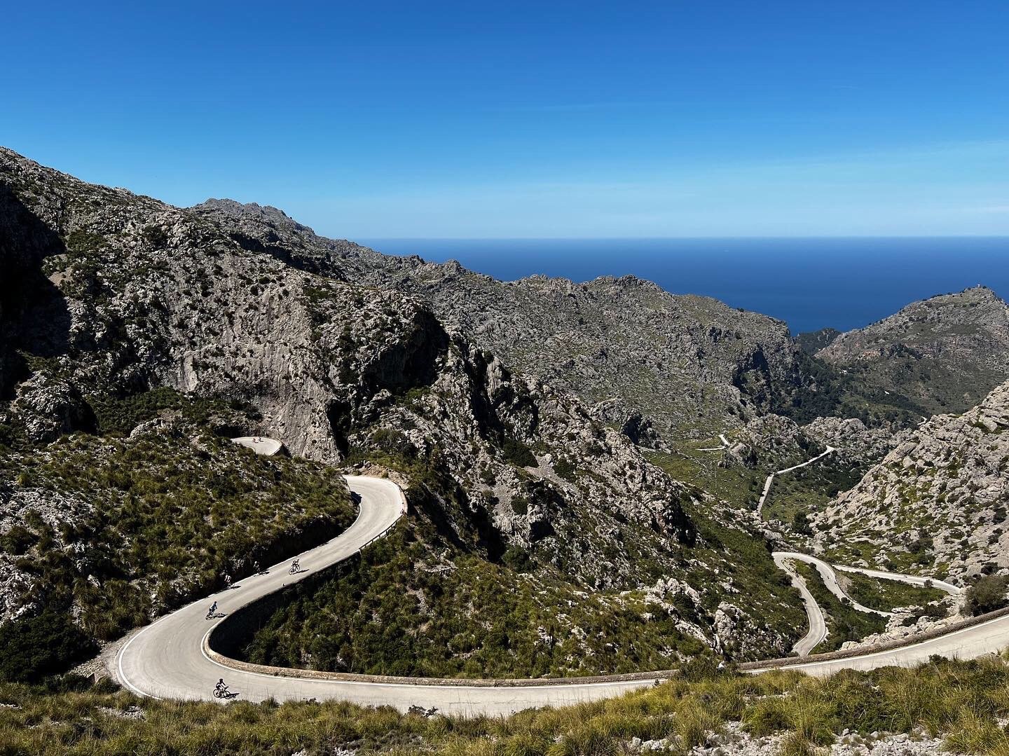 - The routes for each day of the week are fixed. They thoughtfully do a hard/easy structure, so when one day is hilly, the next day is flatter. Wednesdays are the off day but they offer an optional ride that is really a must do ride. They rent a small bus and trailer and take us out to the famous Sa Calobra climb or some other adventure on the other side of the island. Sa Calobra in my opinion is one of the greatest climbs/descents in the world. It’s truly spectacular and unforgettable and it would be a huge mistake to miss it. That ride adds an extra cost, but it includes a huge Majorcan feast at the end of the ride and is well worth the cost. Check out the roads on YouTube ‘Cycling down Sa Calobra’ and also check this video out for quality shots of the roads, not the car.